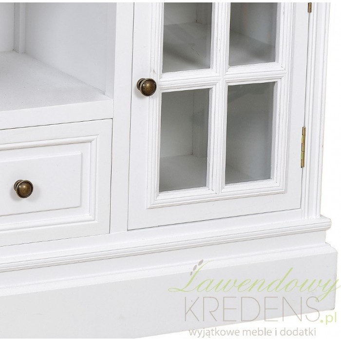 Prawie metrowa komoda prowansalska z dwiema oddzielnymi półkami z oszklonymi drzwiczkami i dodatkową przestrzenią nad szufladą!
