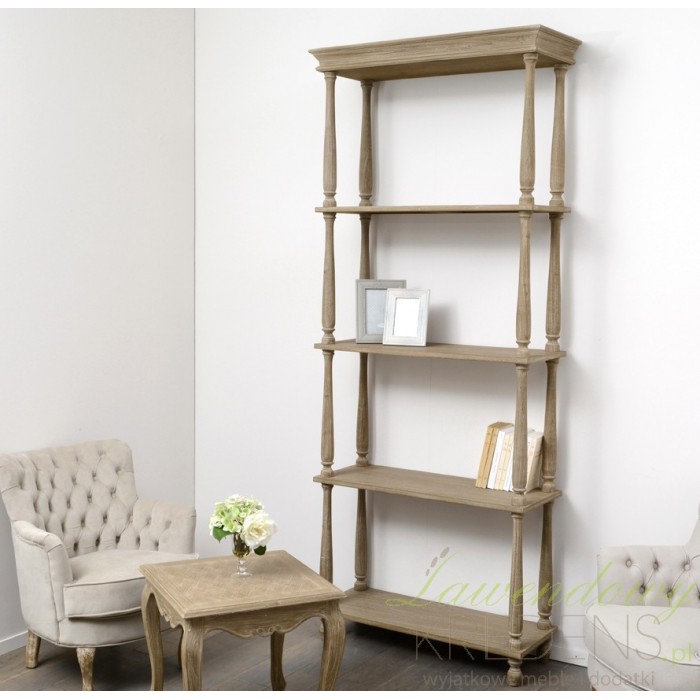 Wyjątkowo wysoki regał prowansalski, którego powierzchnia naznaczona została świetnie wyglądającymi bieleniami! Warty uwagi!