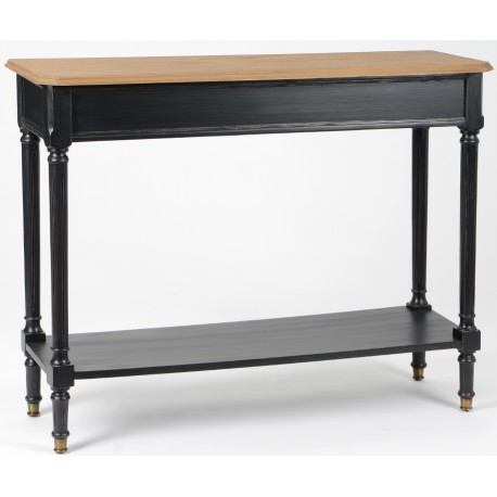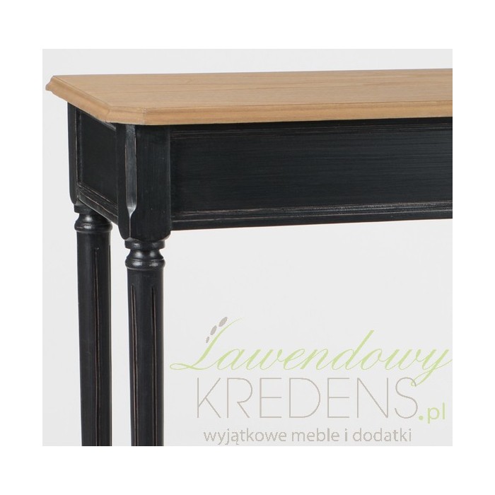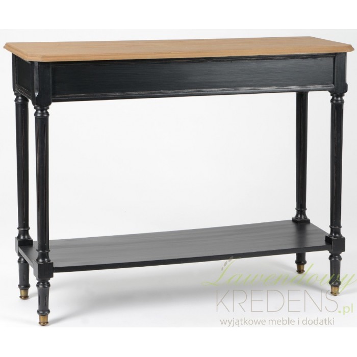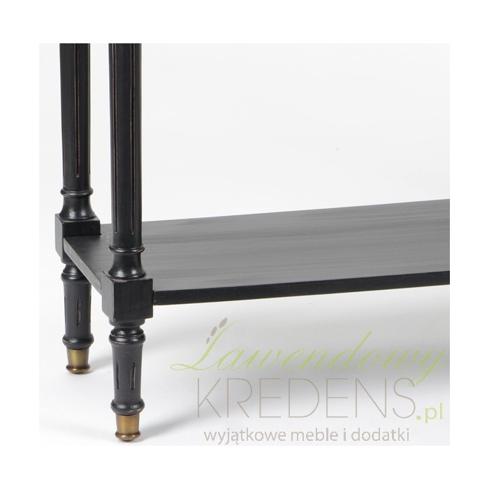 Szeroka na ponad metr konsola prowansalska z półką, która jednocześnie stwarza większą przestrzeń użytkową na rzeczy, z drugiej strony znacznie zwiększa stabilność mebla, przez co konsola jest bardzije wytrzymała. Stylizowane na styl prowansalski czarne meble z jasnymi blatami to świetny pomysł na znaczącą zmianę wnętrza, która spodoba się każdemu!
