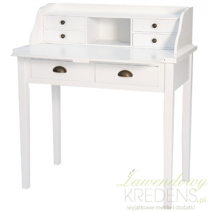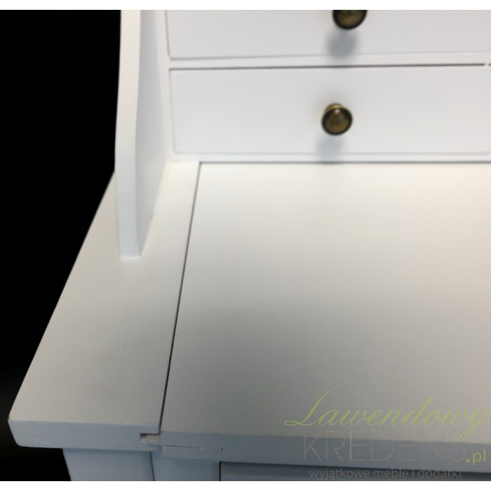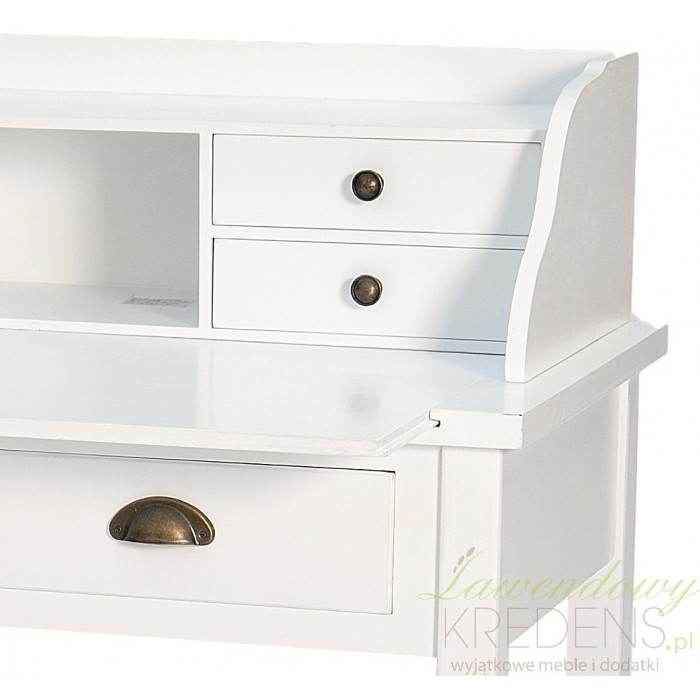 Specjalnie dla Twojej wygody i komfortu stworzono biały sekretarzyk w stylu prowansalskim, zgrabny mebel idealny do pracy czy nauki, z licznymi szfladkami i półkami. Dodatkową odmianą jest wysuwany blat, który nie tylko daje więcej miejsca roboczego, ale także pozwala swobodnie usiąść i pracować!