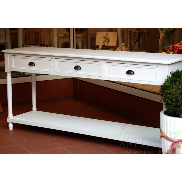 Bardzo szeroka konsola prowansalska, która oprócz standardowych szuflad oferuje półkę w dolnej części!