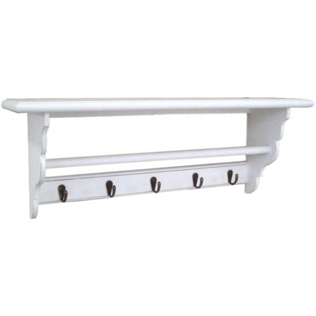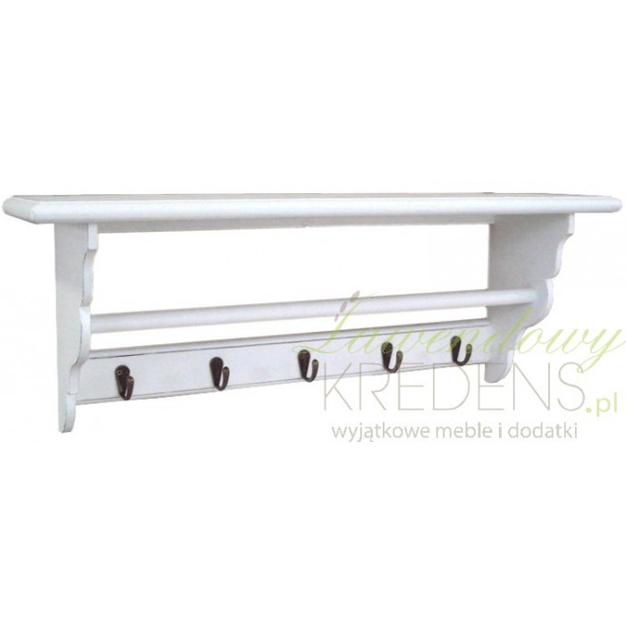 Meble w stylu prowansalskim to zachwycające, liczne dodatki do wnętrz, które udekorują mieszkanie w sposób niepowtarzalny i niezapomniany. Wieszaki z półką pochodzenia niemieckiego stanowią rewelacyjną ozdobę przedpokoju, nadając mu delikatnego i subtelnego charakteru. Białe wieszaki ścienne z kolekcji Riviera mają pięć delikatnych wieszaczków na ubrania i niewielką półeczkę nad nimi, służącą do położenia na niej kluczy czy też na przykład rękawiczek.