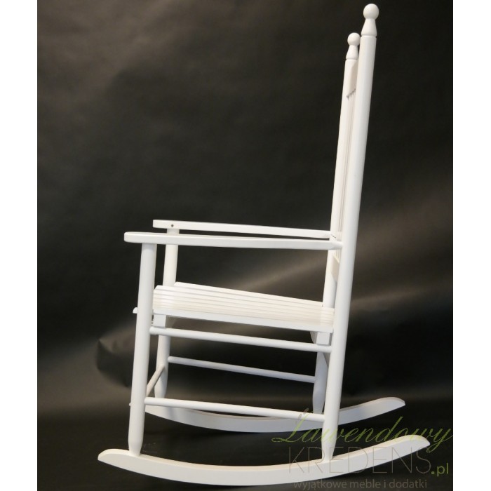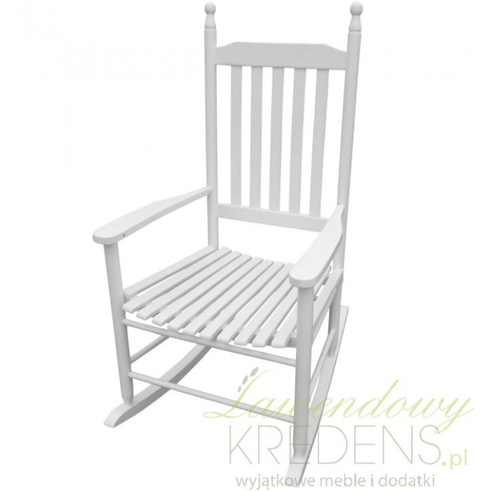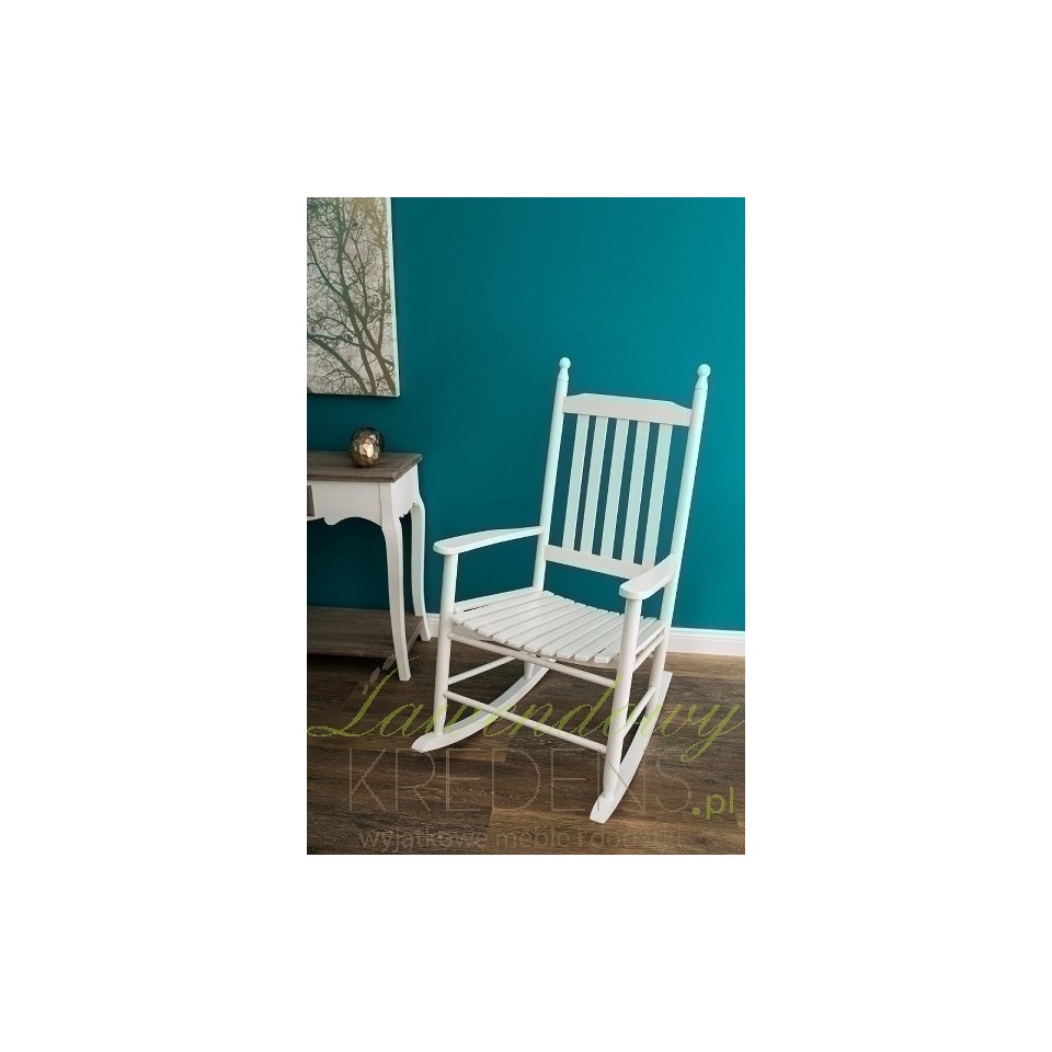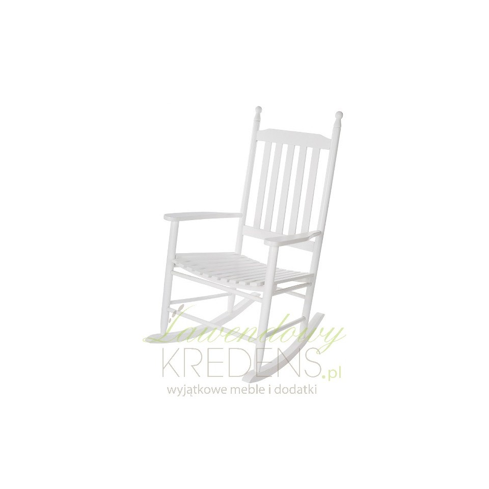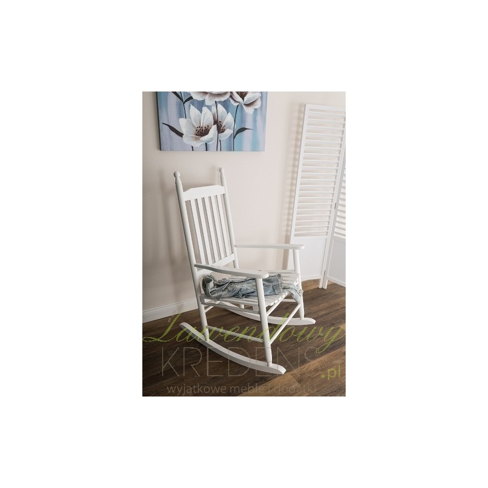 Solidnie wykonane, a jednocześnie bardzo komfortowe krzesło bujane z wysokim oparciem, które utrzyma sylwetkę w pionie. Biały kolor świetnie złagodzi przestrzeń, bez problemu wkomponuje się w każde wnętrze. Poczuj się nieziemsko spędzając wspaniałe chwile w fotelu na biegunach, które stylowo reprezentuje meble prowansalskie.