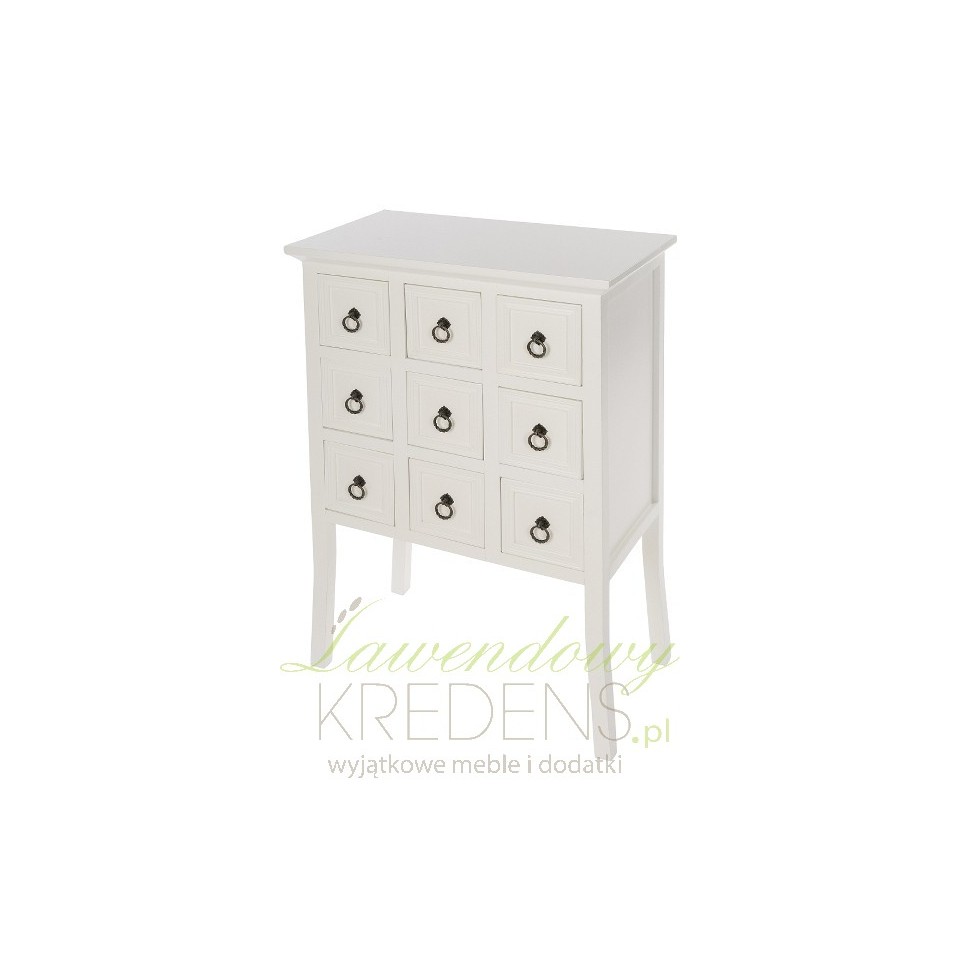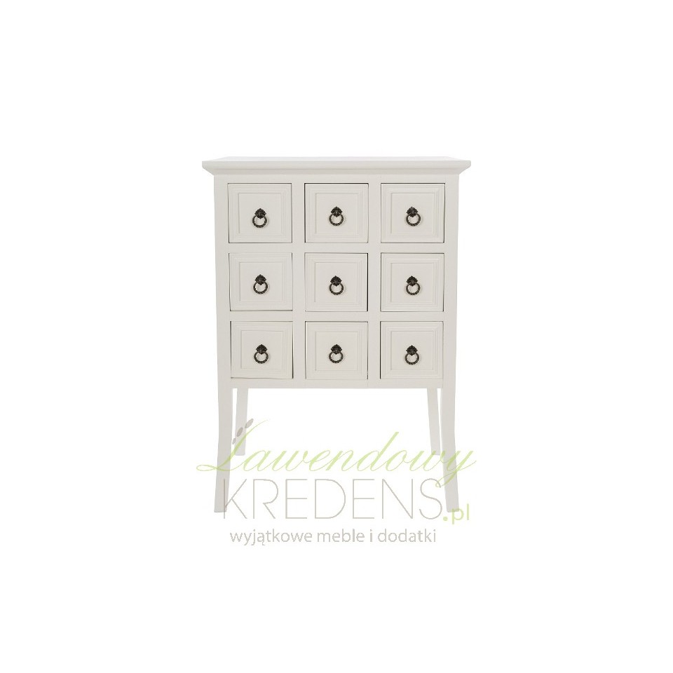 Biała komoda prowansalska z kolekcji Riviera pochodzenia niemieckiego z dziewięcioma małymi szufladkami!