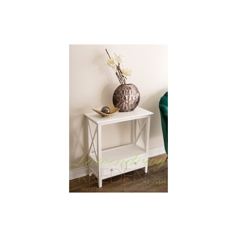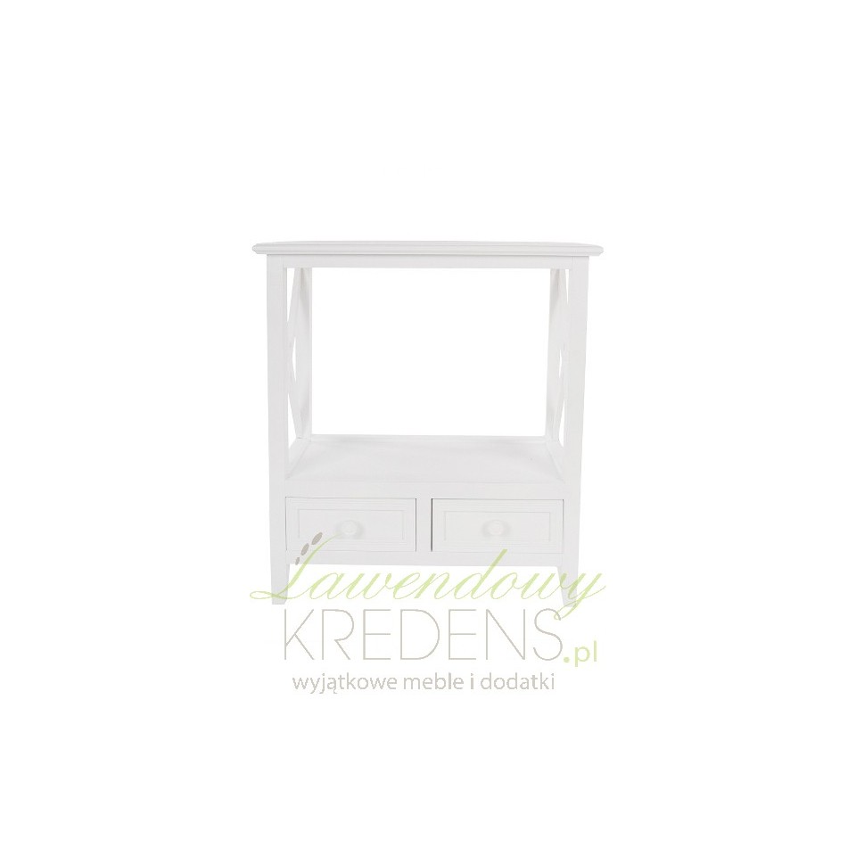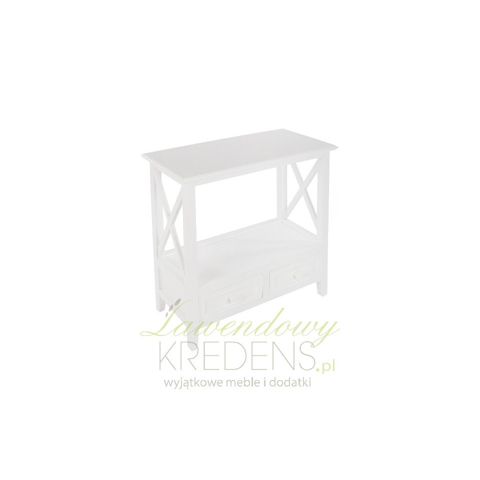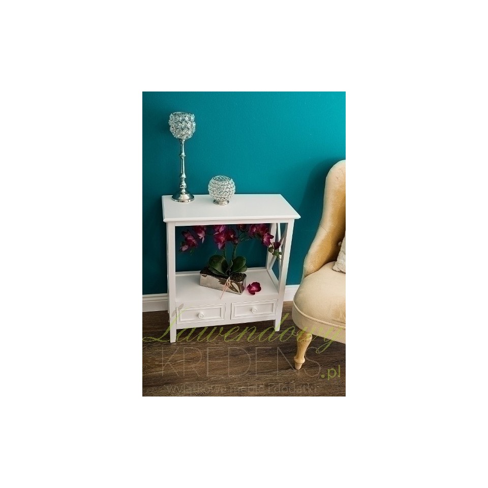Nietypowa szafka prowansalska w kolorze białym z dwiama szufladami w dolnej części i dużą przestrzenią pod blatem! Zapraszamy!