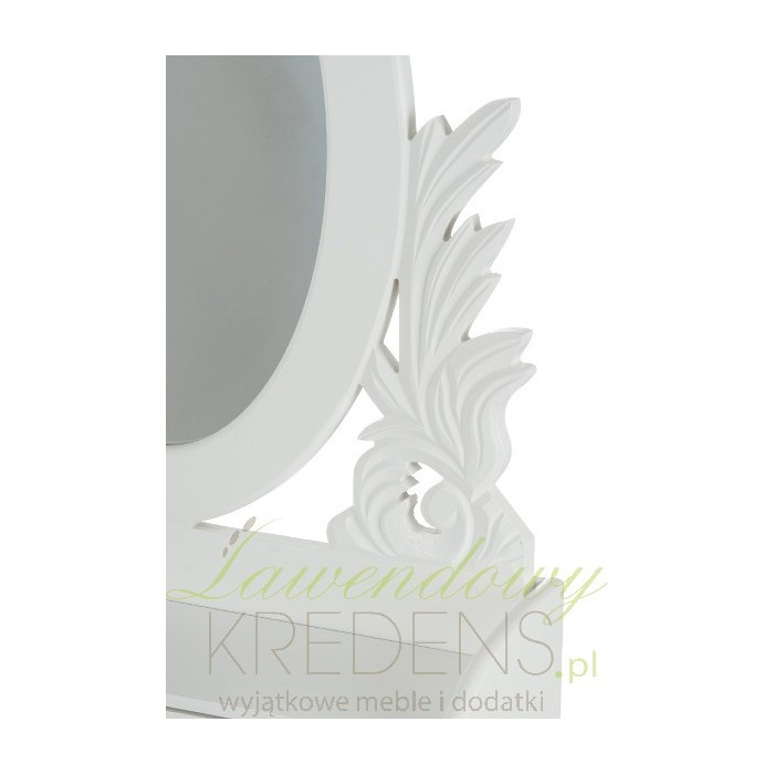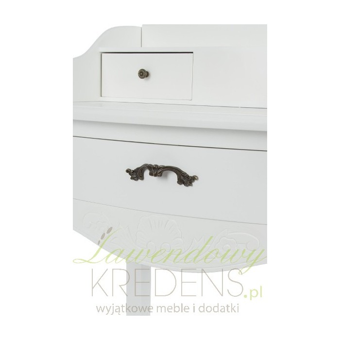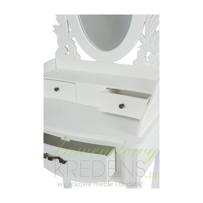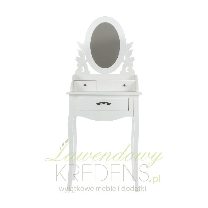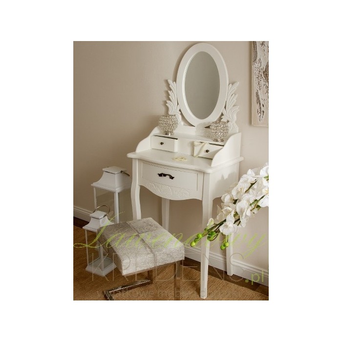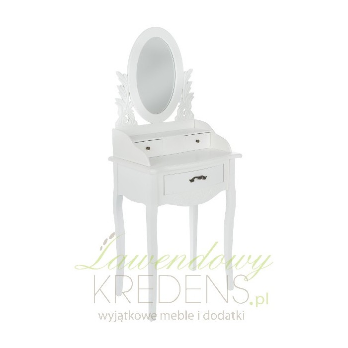 Urocza toaletka prowansalska z nadbudowanym owalnym lusterkiem w pięknie ozdobionej rzeźbieniami ramie. Doskonała!