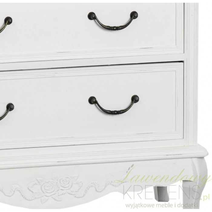 Stylowo elegancka, biała witryna na modę prowansalską, ustawiona na czterech krótkich nóżkach podkreślających klimat całości. W osłoniętej gablocie z oszklonymi ściankami możesz bez obawy przed kurzem wyłożyć ulubione przedmioty czy książki, na które lubisz spoglądać. Dodatkowe szuflady to świete miejsce na bieliznę stołową, którą dobrze jest mieć pod ręką!