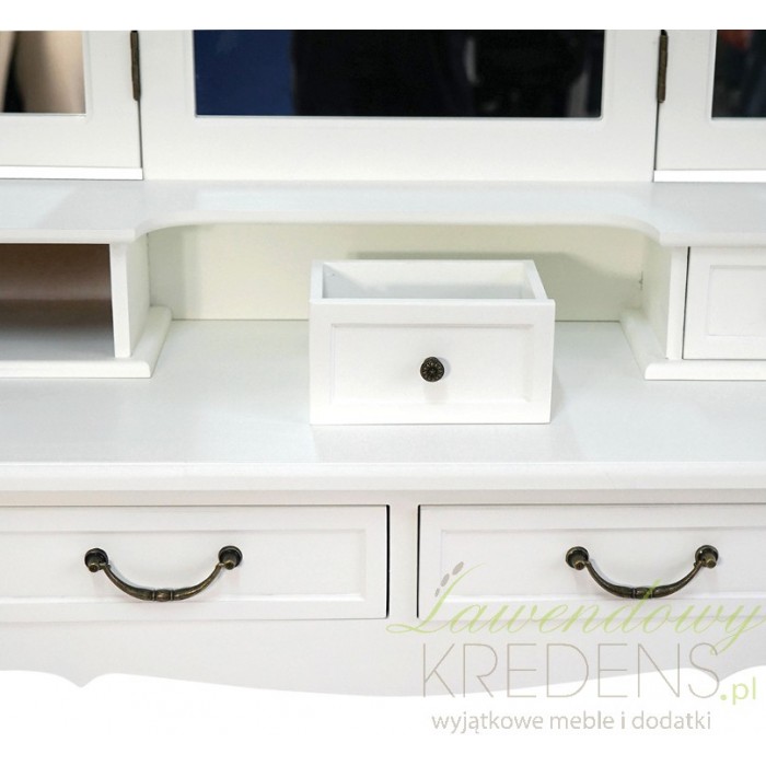 Absolutnie rewelacyjna toaletka prowansalska w kolorze białym z dużym, dodatkowo rozkładanym lustrem dla Twojej wygody!