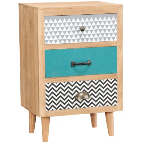Niewiarygodnie stylowa szafka skandynawska z trzema szufladkami, które pozytywnie zaskoczą Cię swoimi nietypowo kolorowymi frontami!