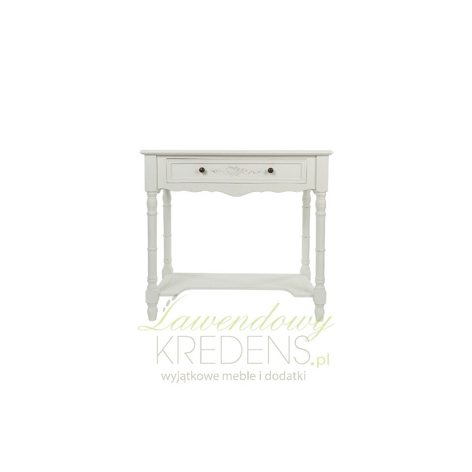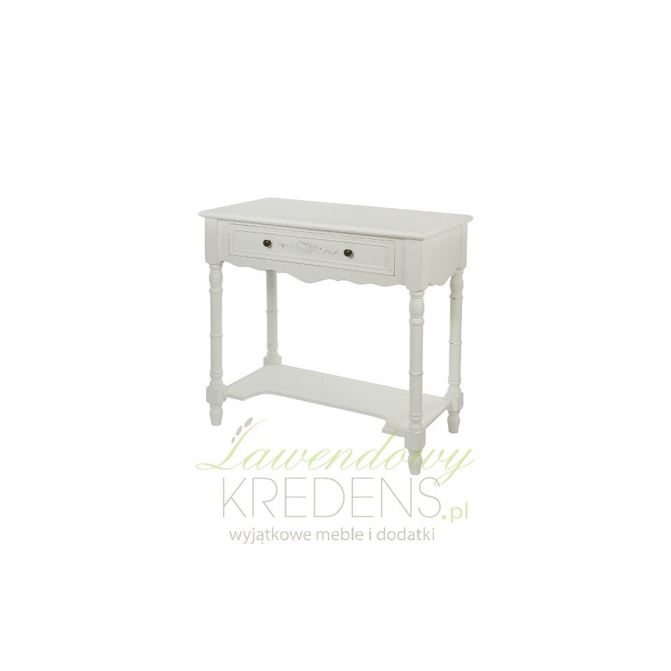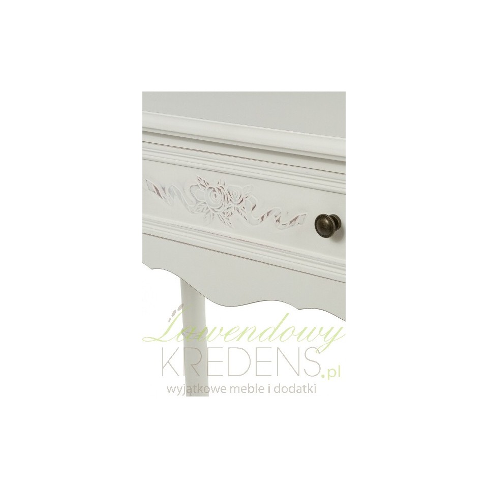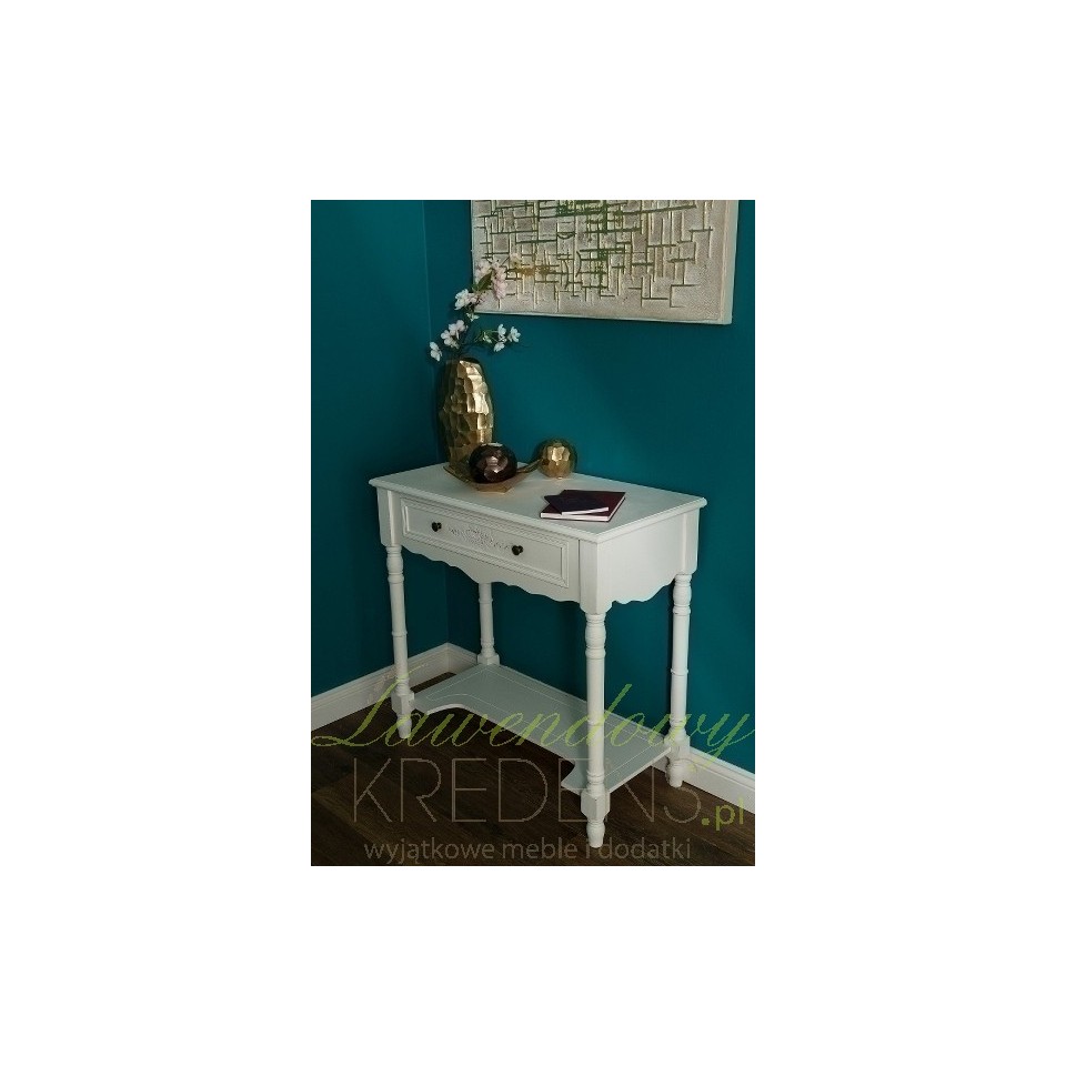 Meble w stylu prowansalskim nadają twojemu mieszkaniu niepowtarzalny styl i elegancję. Konsola prowansalska ma biały kolor i posiada jedną szufladę i półeczkę na dole. Świetnie sprawdzi się w przedpokoju lub w sypialni, jako nietuzinkowy i oryginalny stolik lub toaletka. Biała konsola to piękne dzieło o finezyjnych, opływowych kształtach, z unikalnie ozdobioną szufladką.