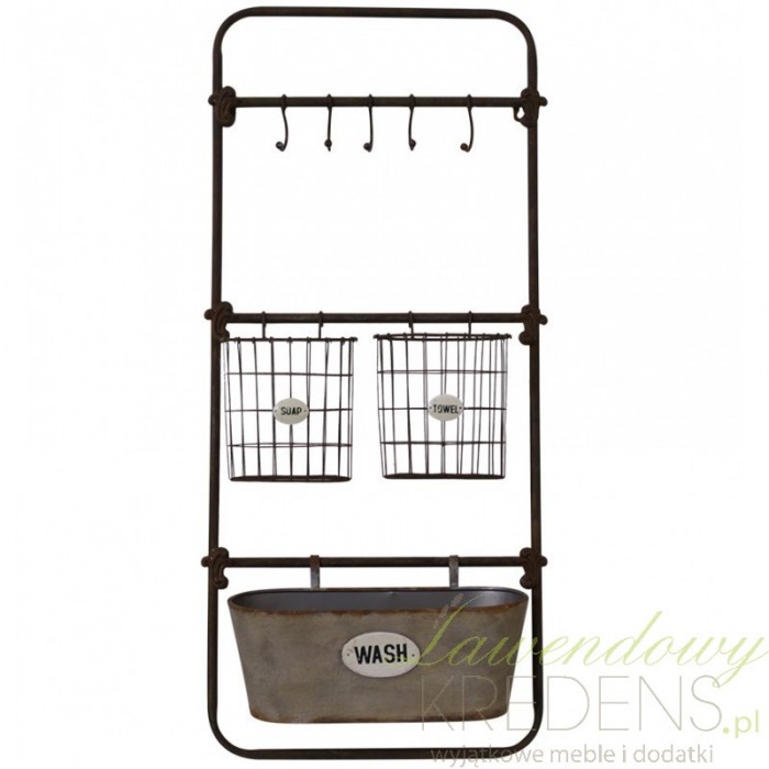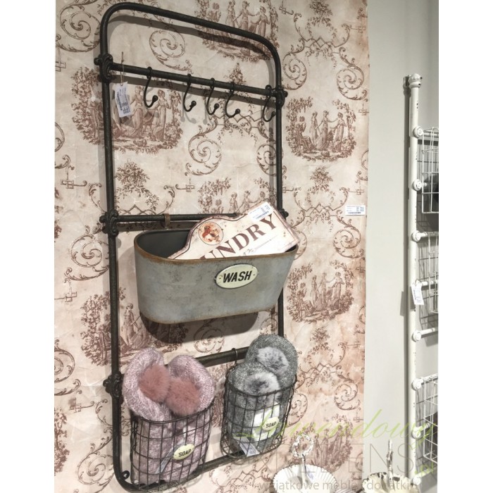 Odważny i znakominie wyglądający wieszak łazienkowy ze stylowymi koszykami od firmy Chic Antique. Istne cudo!