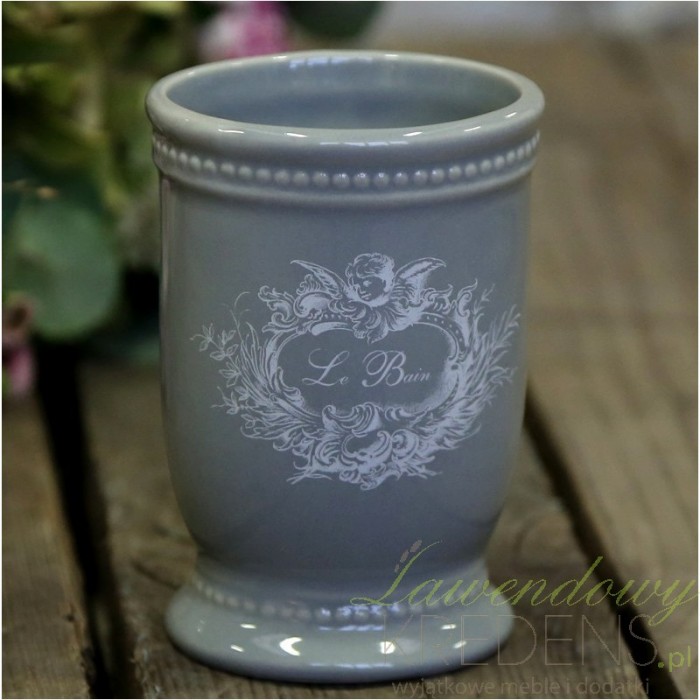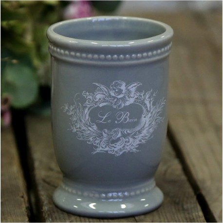 Dodatki do łazienki stanowią ważny element dekoracyjny wnętrza. Dzięki nim łazienka jest elegancka i pełna ciepła. Kubek ceramiczny firmy Chic Antique to doskonałe miejsce do płukania buzi lub na szczoteczki do zębów. Ma kolor szary, a z przodu białą ozdobną ramkę z napisem Le Bain. Polecamy!