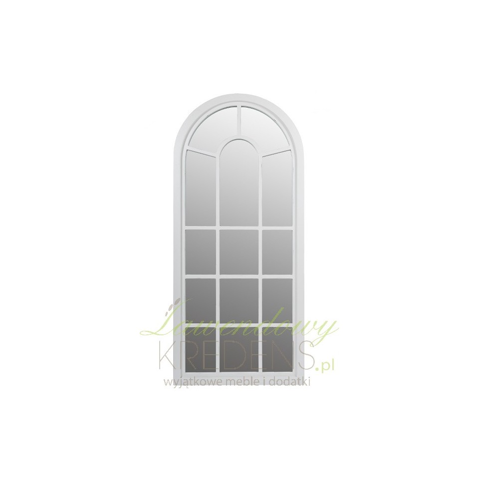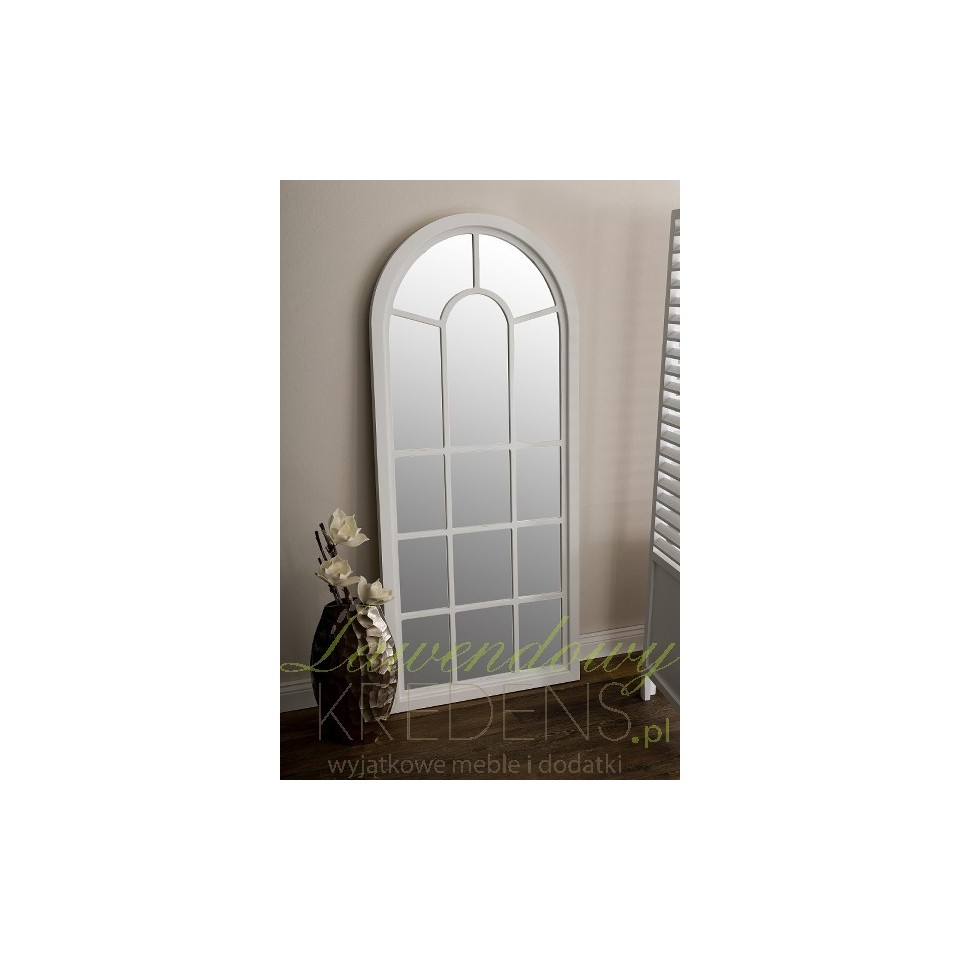 Zakończone owalną attyką lustro w stylu prowansalskim ozdobione dekoracyjną ramą przypominającą okno!