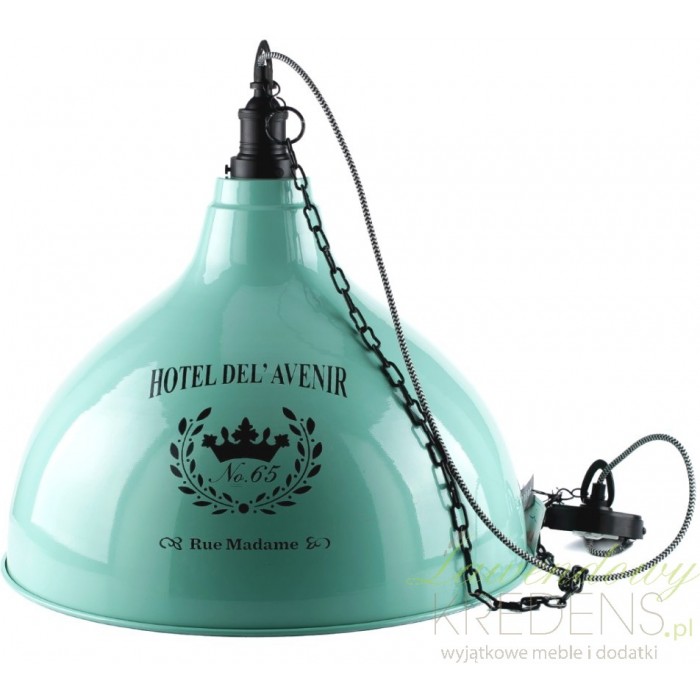 Lampy loftowe to niezwykle modne rozwiązania do wnętrz przemysłowych. Wspaniale sprawdząją się w dużych przestrzeniach, gdzie króluje cegła czy drewno. Najlepszym przykładem jest lampa aluro, która posiada na środku czarne, francuskie napisy nadające mieszkaniu klimat i osobowość. Miętowa lampa zbudowana jest z drewna i metalu a osadzona jest na długim łańcuchu. Zapraszamy do zakupu!