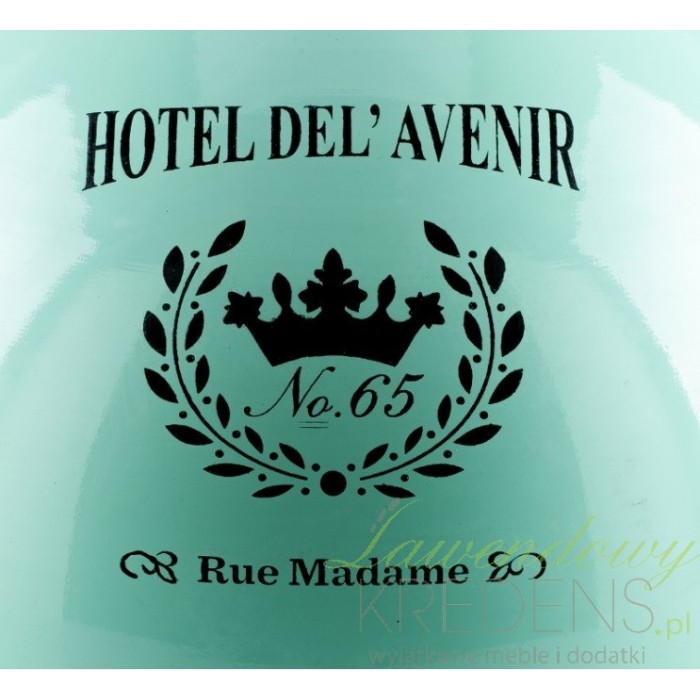 Przepiękna miętowa lampa z dużym, czarnym napisem firmy Aluro, idealna do twojej kuchni!