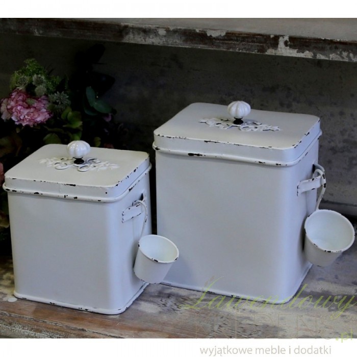 Świetny, metalowy pojemnik od marki Chic Antique, która proponuje zawsze rzeczy zarówno pięknie wyglądające jak i praktyczne czy to w kuchni czy łazience. Powierzchnia pojemnika została celowo, miejscami odrapana, co pozytywnie wpływa na estetykę produktu, gdyż doskonale konstastuje z bielą powierzchni!
