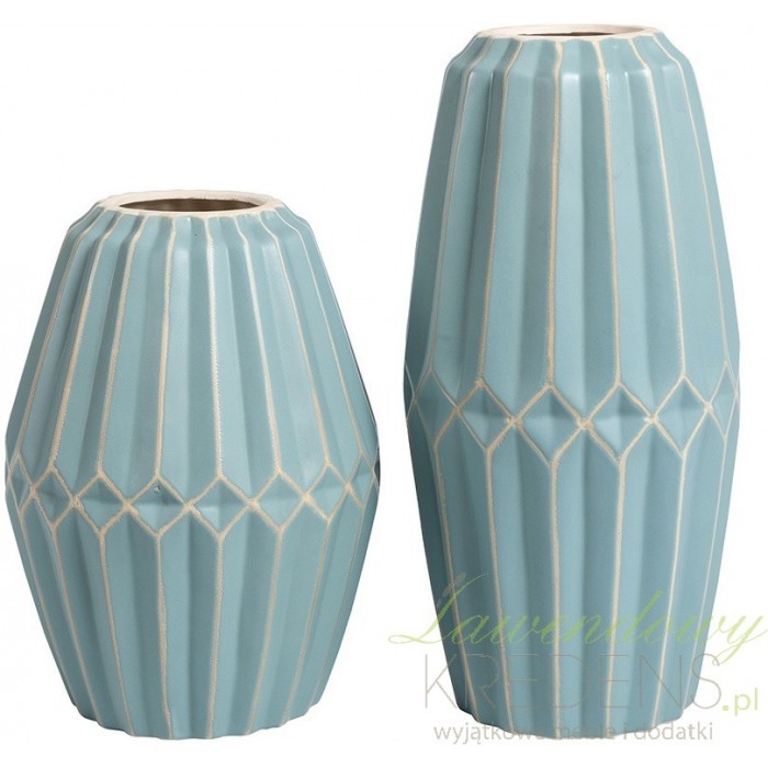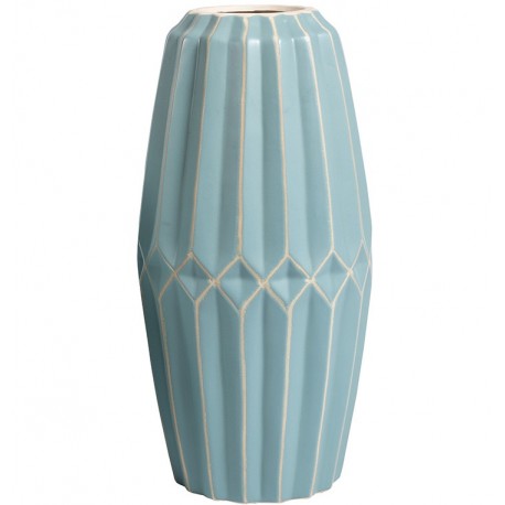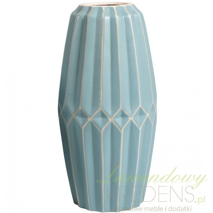 Wysoki na blisko 40cm wazon Beldleco ma interesujący wzór geometryczny i rozszerza sie z góry i z dołu ku środkowi. Krawędzie wazonu zostały delikatnie poprzecierane, co jest gwarancją, że wazon nie wtopi się w żadne tło. Wykorzystaj błękitny wazon w tylu skandynawskim do stworzenia przepięknej dekoracji kwiatowej na stół lub komodę. Dodatki do domu od Belldeco - nie może ich zabraknąć gdy urządzasz dom swoich marzeń!