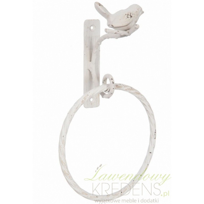 Metalowy, pomalowany na kremowo wieszak na ręczniki z cudwnym motywem uroczego ptaszka na gałązce! Cudo!