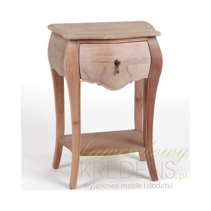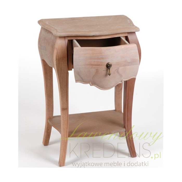 Tchnące naturalnością i nieprzesadnym przepychem stoliki nocne w stylu mebli prowansalskich z ozdobną szufladą i dodatkową półeczką. Ich opływowe kształty przywodzą na myśl miękkość i luksus, a świetnie dobrane elementy wykańczające w postaci metalowych uchwytów do szuflady nadają całość blasku, jaki posiadają wszystkie meble prowansalskie!