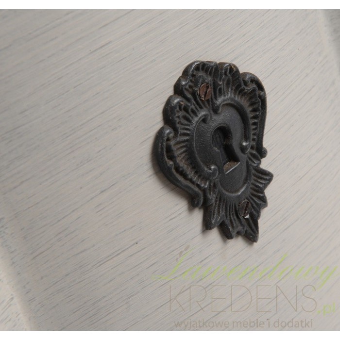 Bardzo stylowa szara komoda w typie prowansalskim, będąca świetnym odzwierciedleniem romantycznych wyobraźeń na temat tego klimatu. Stabilnie stojąca na czterech nogach komoda z dwiema pojemnymi szufladami, ozdobionymi delikatnymi wcięciami i dolnym wycięciem to prawdziwy rarytas wśród mebli!