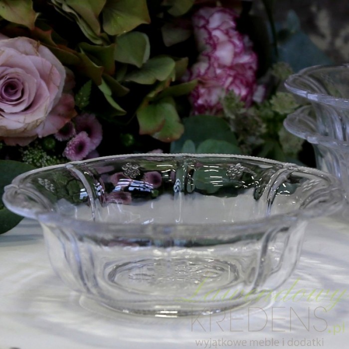 Śliczna, przezroczysta miseczka szklana firmy Chic Antique z wyróżniającą się, wywiniętą krawędzią!