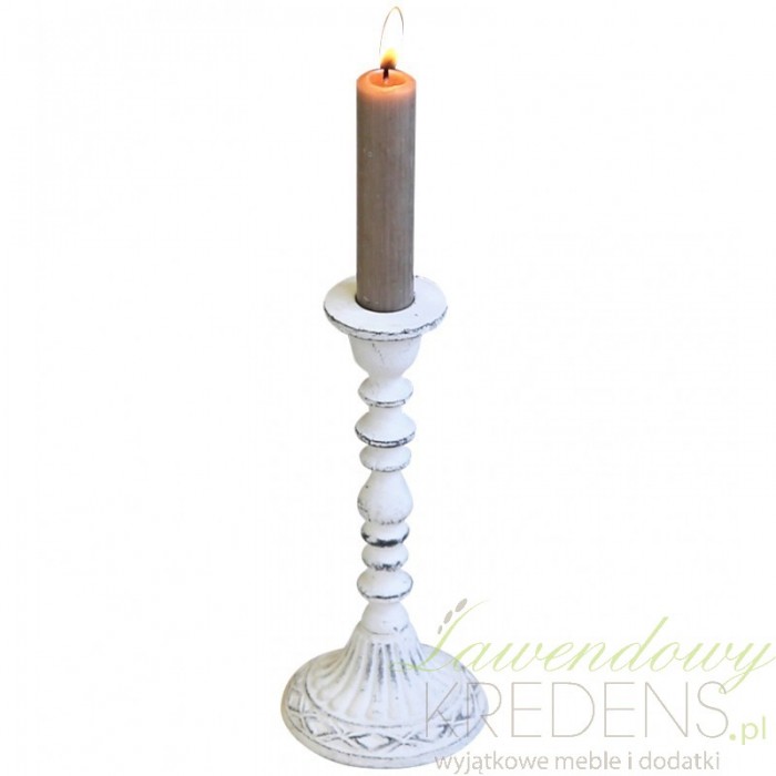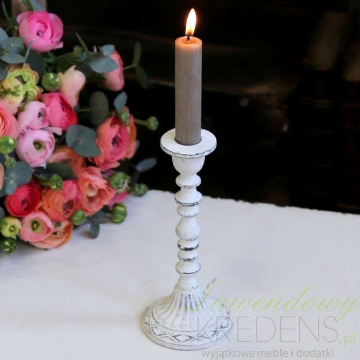 Prosty, a jednocześnie niezwykły świecznik w stylu prowansalskim o białej powierzchni, miejscami delikatnie postarzanej!