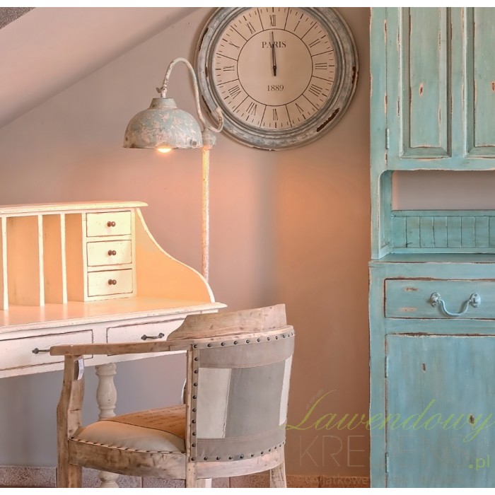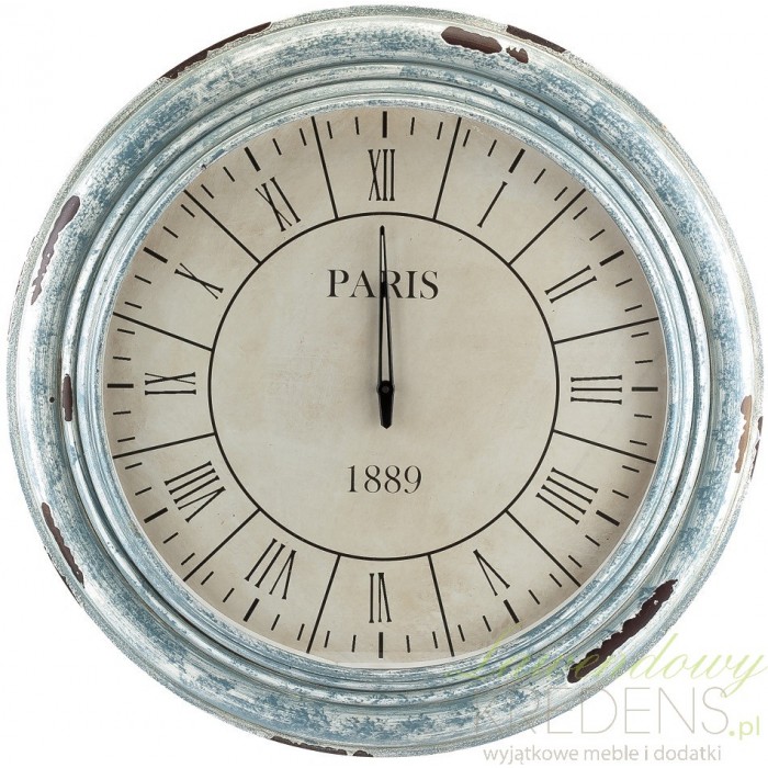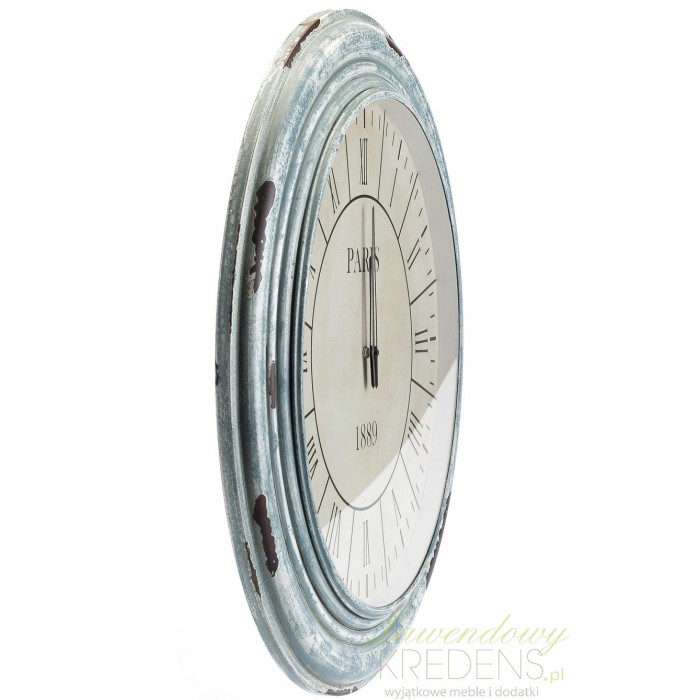 Okazale prezentujący się duży zegar w stylu prowansalskim w przepięknej, postarzenje, drewnianej ramie. Cudowny!