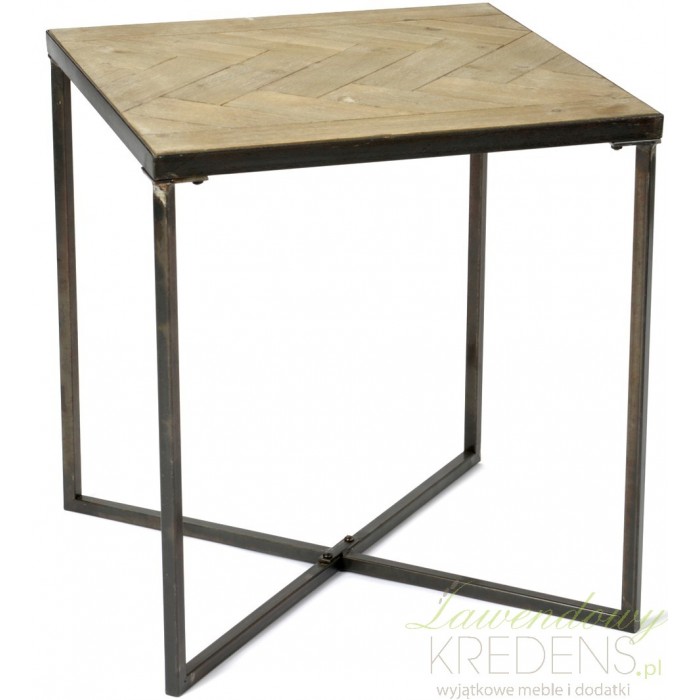 Kwadratowy stolik w stylu skandynawskim, którego wyróżnikiem jest przepiękny blat ułożony z licznych elementów!