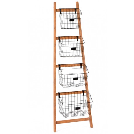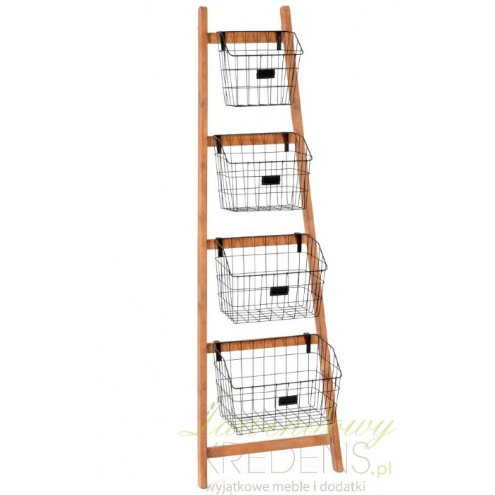 Dekoracyjna drabina z koszami to świetny dodatek do Twojego wnętrza, zachwycający pomysłem i możliwościami wykorzystania. W metalowych kosza możesz przechowywać kosmetyki, przybory szkolne czy kwiaty. Piękne, jasne drewno doskonale prezentuje się w każdym wnętrzu!
