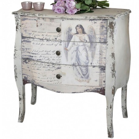 Nie przejdziesz obok niej obojętnie! Komoda prowansalska Chic Antique z wizerunkiem Anioła na postarzenej powierzchni szuflad!