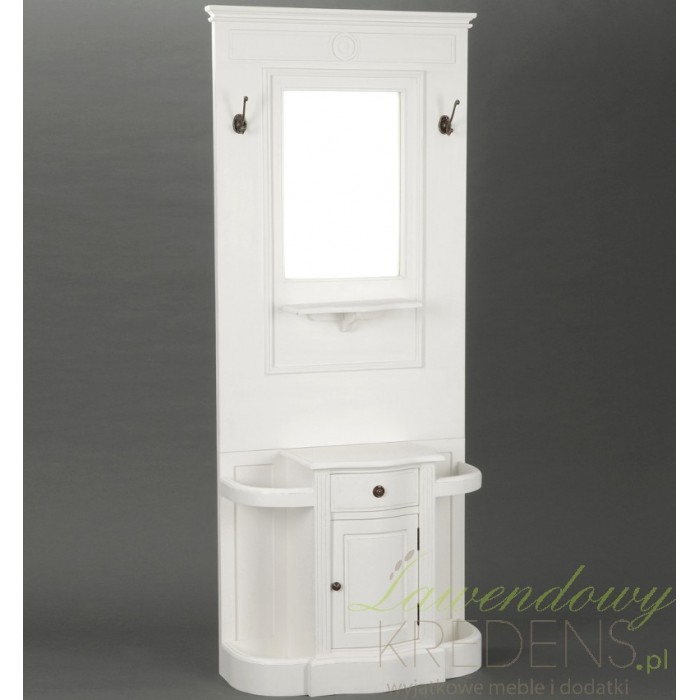 Wszystko w jednym, czyli bardzo praktyczny mebel do przedpokoju z kolekcji Adele. Biały narożny mebel to połączenie wieszaka z lustrem, stojaka na parasole, i szafki na klucze czy inne drobiazgi. Wygląda rewelacyjnie, zwłaszcza w zestawieniu, w którym występują także inne meble w stylu prowansalskim! Wygodny i praktyczny mebel na lata!