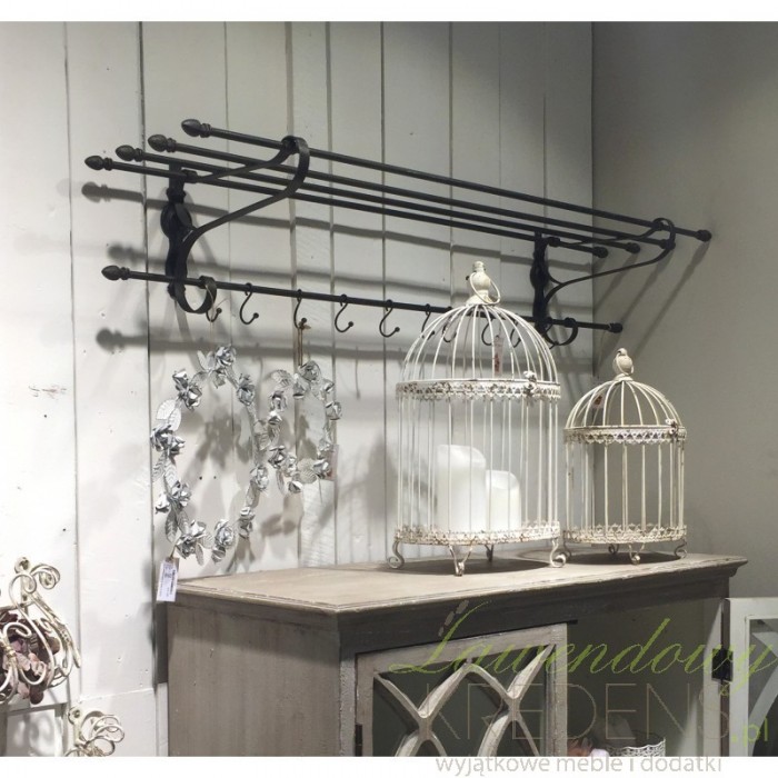 Duży, czarny wieszak z półką świetnej firmy Chic Antique, który posiada liczne uchwyty na okrycia wierzchnie!