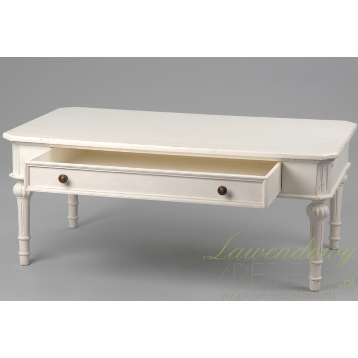 Stabilny i zapewnijący komfort użytkowania stolik w stylu francuskim pełen stylu i klasy. Duży, prostokątny blat to doskonałe miejsce na ustawienie popołudniowej kawy czy herbaty, na którym z pewnością nie zabraknie miejsca na słodkie przekąski. Stolik kawowy odznaczjaący się francuskim stylem to mebel właśnie dla Ciebie!