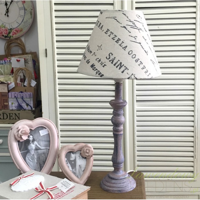 Lampa w stylu prowansalskim to fenomenalna dekoracja twojego pokoju. Lampa prowansalska umieszczona jest na stojącej drewnianej i przecieranej nodze. Jej górę zdobi beżowy abażur we francuskie czarne napisy. Lampy prowansalskie to znakomite dodatki do wnętrz, które w osobliwy sposób podkreślają wygląd pokoju, pozostawiając go w oryginalny sposób odmienionym.