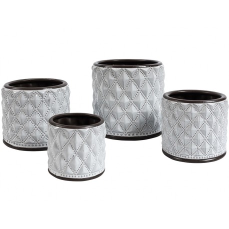 Osłonka na doniczkę wykonana jest z wysokiej klasy ceramiki szkliwionej. Ma okrągły kształt i cudowny popielaty kolor. Jest bardzo elegancka i ma wzór w wyjątkowe romby. Osłonki na doniczki, a wśród nich osłonki Belldeco doskonale się będą prezentować na oknie czy balkonie.