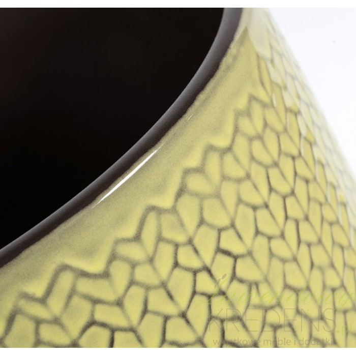 Osłonki na doniczki firmy Belldeco wykonane są z wysokiej klasy ceramiki. Osłonki Belldeco mają ciepły, zielony kolor i ciekawy wzór. Są okrągłe i doskonale ochronią twoje rośliny przed mrozem czy wiatrem.