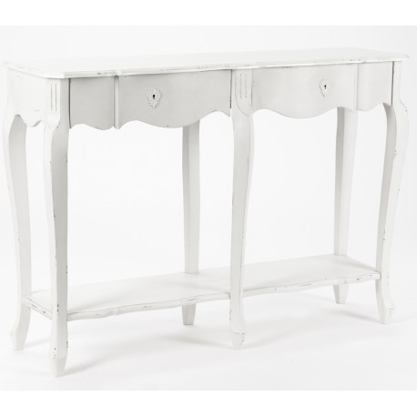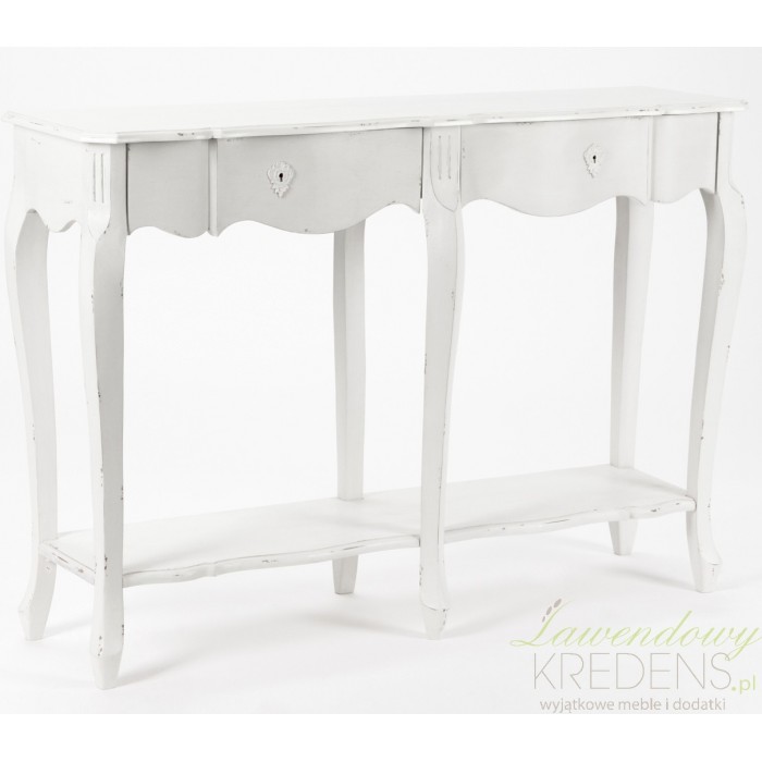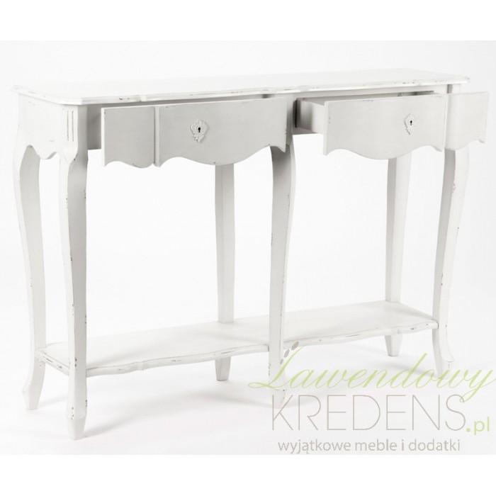 Przyciągająca uwagę gości i domowników konsola w stylu prowansalskim z pięknie wykrojonymi frontami szuflad. Zachwycająca!