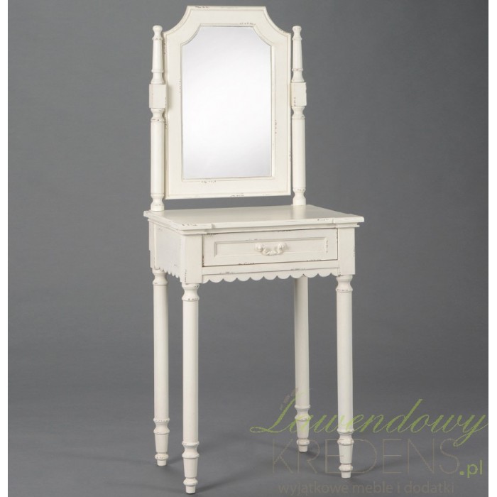 Dlatego polecamy sekretarzyk prowansalski z funkcjonalnym blatem, szufladką i dużym lustrem w stylowej ramie, które sprawia, że sekretarzyk może stać się także Twoją ulubioną toaletką.