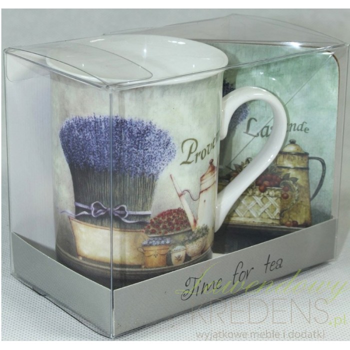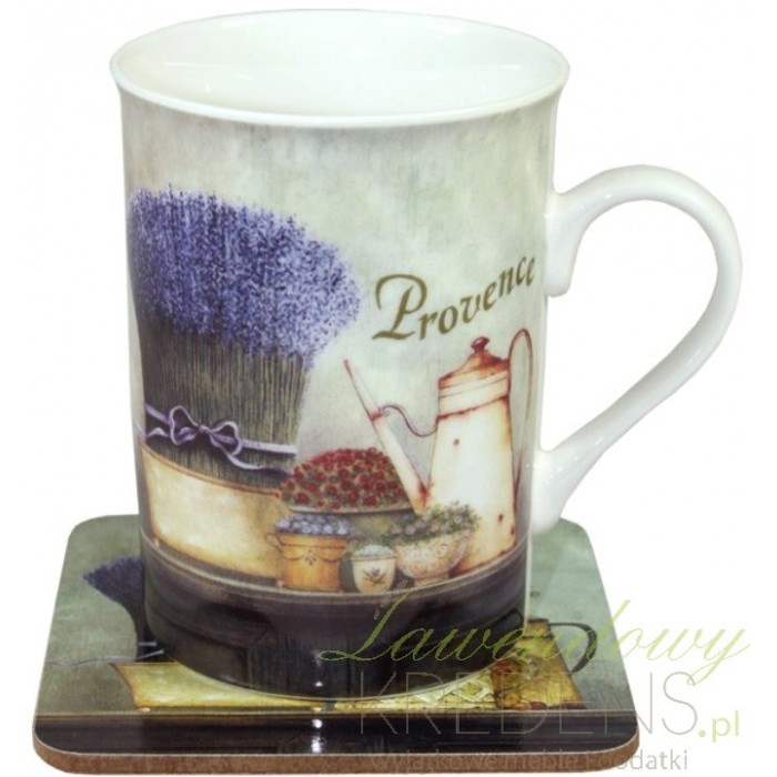 Bardzo stylowy kubek z lawendą o prostym kształcie z uchem w kolorze białym i korkowa podkładka z prowansalskim motywem to nie tylko świetny pomysł na prezent, ale także podręczny zestawik każdego miłośnika herbaty czy kawy. W doskonały nastrój wprawi Cię z pewnością prowansalska grafika w stonowanych kolorach