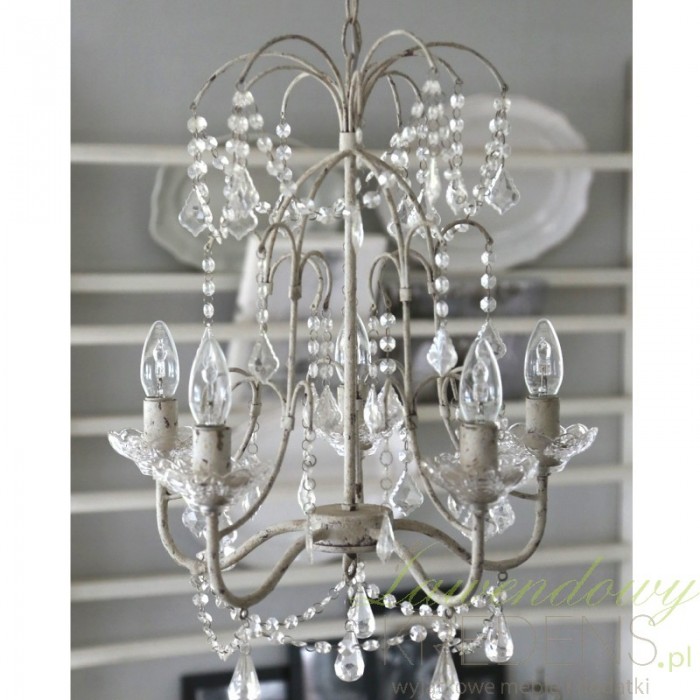 Łączące w sobie siłę metalu i lekkość kryształków żyrandole prowansalskie w odcieniu antycznej bieli! Zjawiskowe!