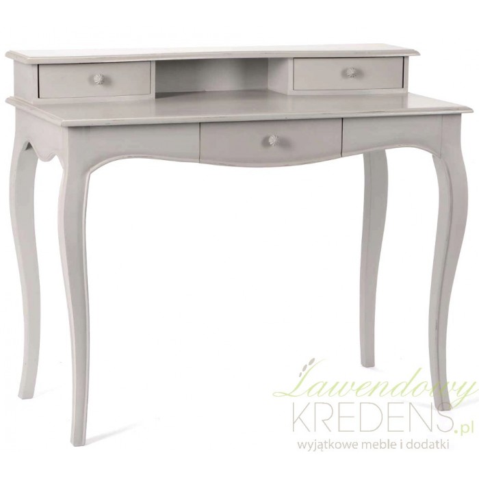 Zachwycający sekretarzyk w stylu prowansalskim z dużym, praktycznym blatem, na którym z przyjemnością będziesz pracować. Fantastycznym atutem tego wyjątkowego mebla jest ciągnąca się na całej szerokości nadbudowa, z dwiema szufladkami i małą wnęką, która dodatkowo powiększy Twoja przestrzeń pracy.