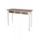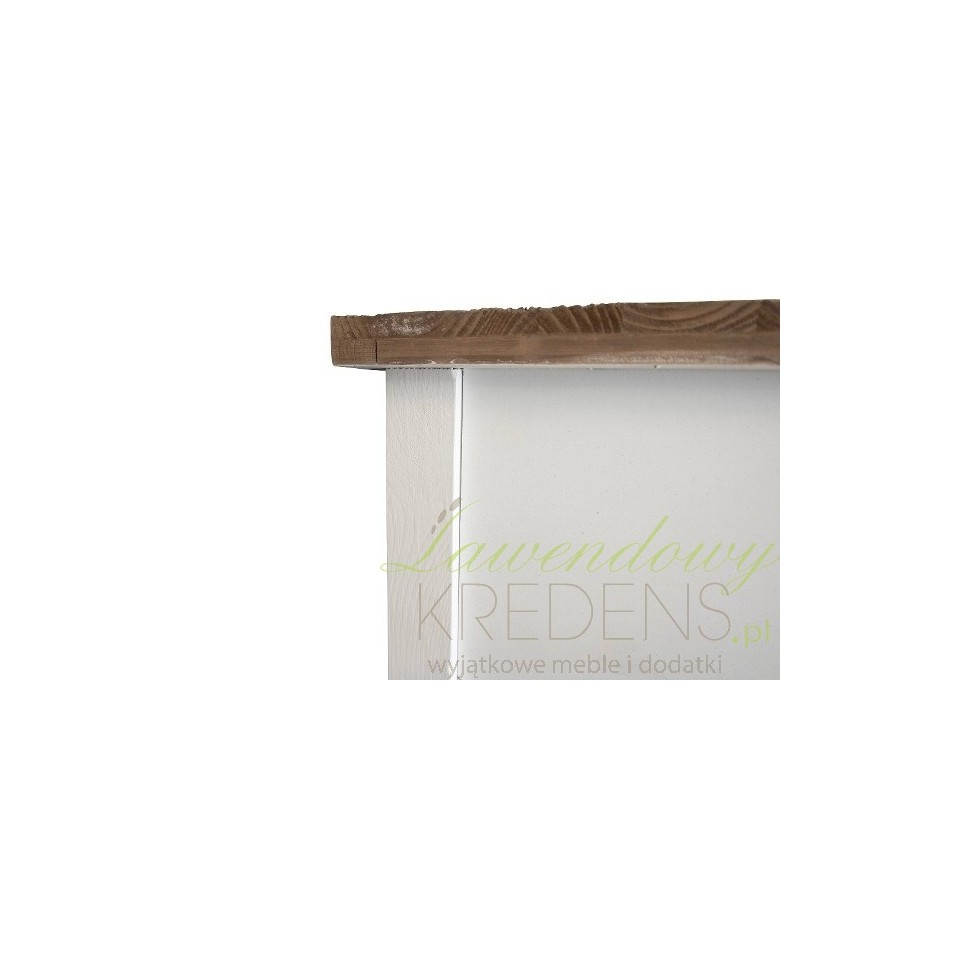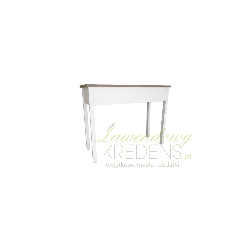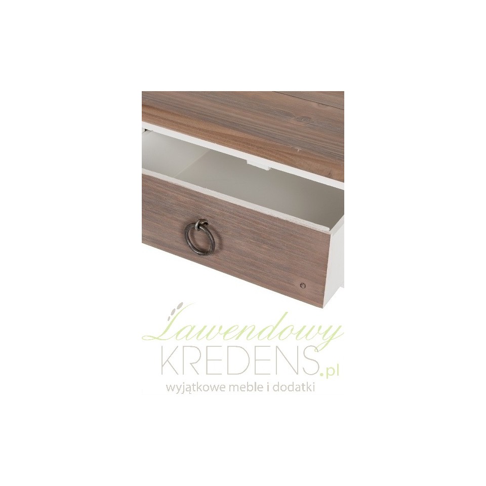 Ciekawa konsola prowansalska, która może również z powodzeniem wystąpić w roli niewielkiego biurka z szufladami. Koncepcja połączenia dwóch kolorów: bieli i brązu z widocznymi na powierzchni słojami to strzał w dziesiątkę, gdyż takie połączenie nie tylko wygląda rewelacyjnie, to jeszcze pięknie komponuje się z każdym wnętrzem!