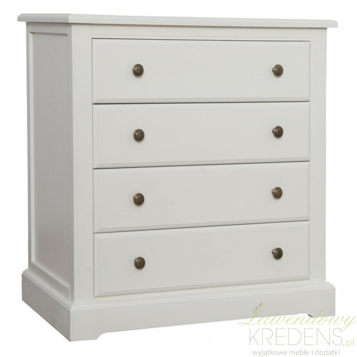 Prosta, biała komoda prowansalska firmy Livin Hill z kolekcji Skagen z czterema dużymi szufladami!