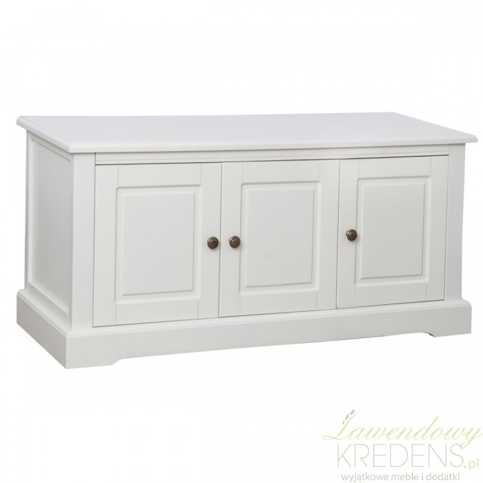 Niska, kremowa komoda prowansalska firmy Livin Hill mogąca również posłużyć, jako ława do siedzenia!