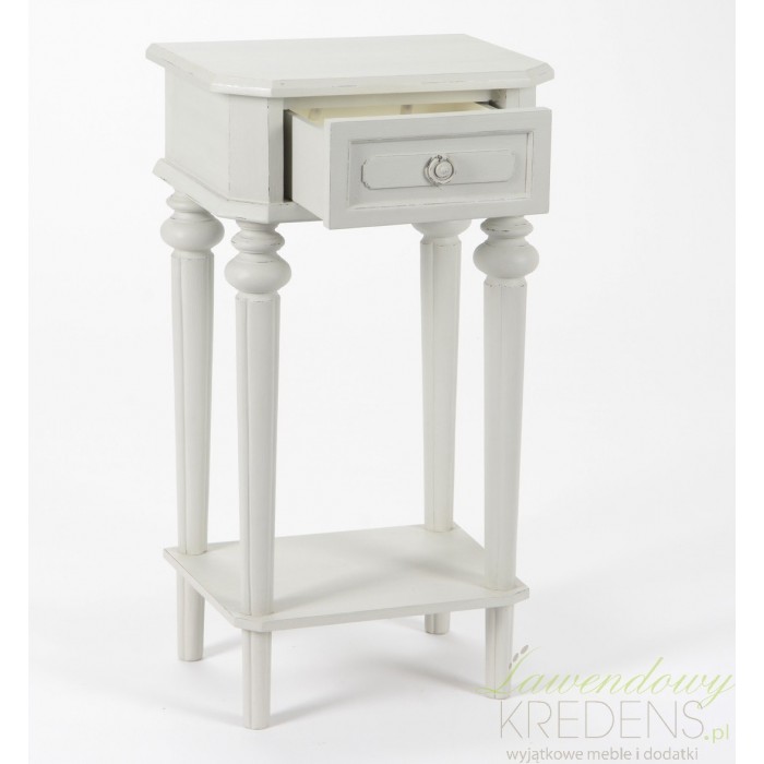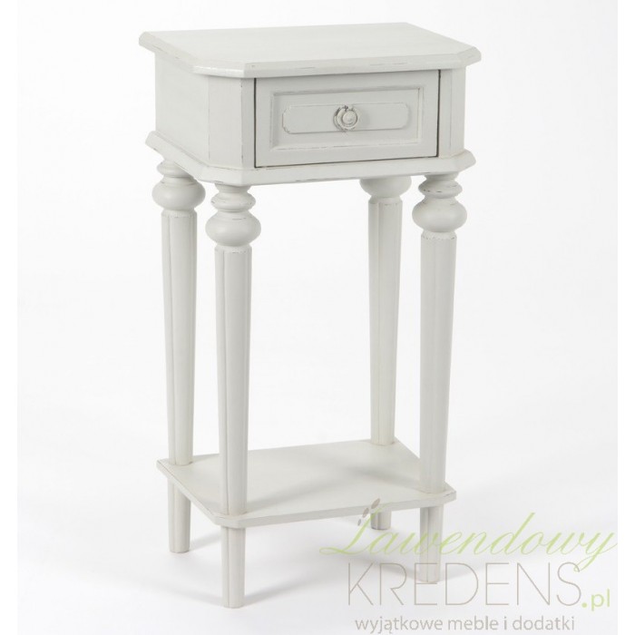 Zgrabny stolik prowansalski, wyposażony dodatkowo w podręczną szufladę i niższą półkę, która zapewnia dodatkowe miejsce na Twoje gadżety. Pięknie wyprofilowane nogi z dekoracyjnymi zmianami przekroju dodatkowo podkreślają fakt, że stolik wykonany został w stylu prowansalskim i że świetnie prezentował się będzie we wnętrzach o takim stylu!