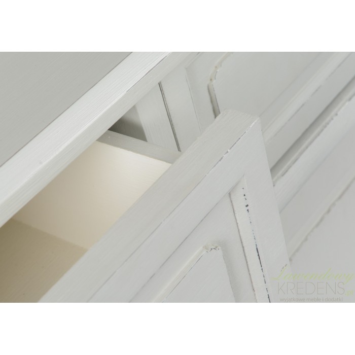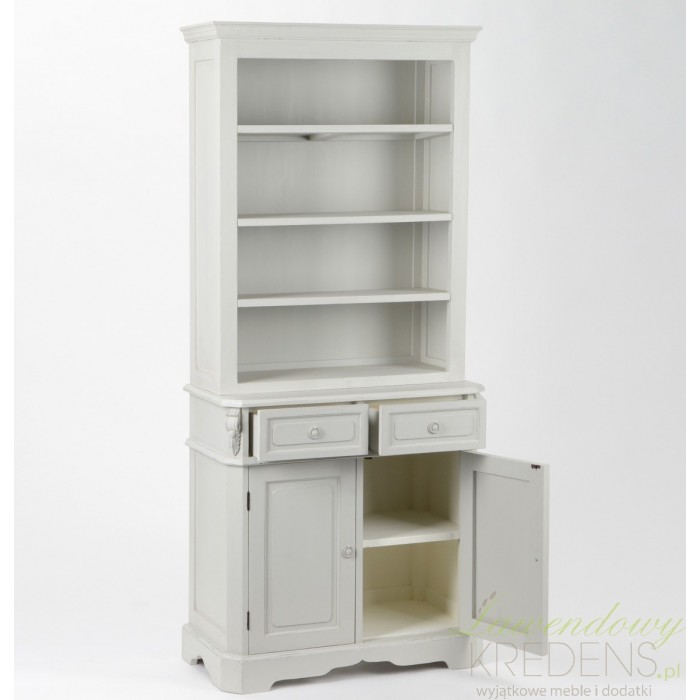 Przepiękny kredens prowansalski z cudowną szarą powierzchnią, która nada Twojemu wnętrzu dostojeństwa i elegancji. Kredens prowansalski posiada widoczny podział na dwie części: górną otwartą oraz dolną, z szufladami i półkami zamykanymi drzwiczkami. Takie połączenie sprawdzi się także u Ciebie!