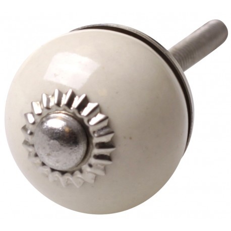 Gałki meblowe to wspaniałe i zaskakujące dodatki , które mogą w sposób diametralny odmienić wygląd mebli. Gałki do mebli to ciekawa propozycja na to, jak w niebanalny i wyjątkowy sposób zmienić wnętrze domu. Gałka meblowa firmy Chic Antique to kremowa kula z ozdobnym, srebrnym dodatkiem na środku w kształcie kwiatka. Każdy taką chciałby mieć!