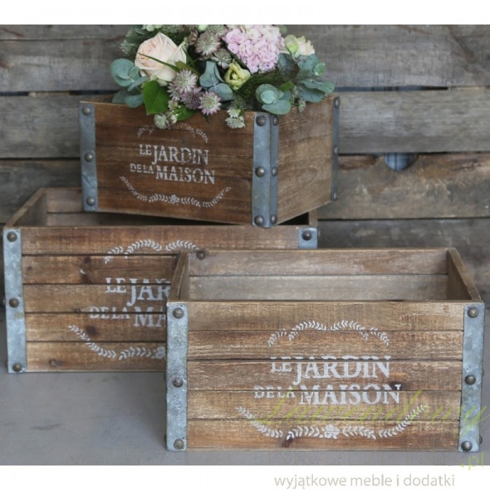 Bardzo prowansalskie osłonki drewniane, których metalowe elementy dekoracyjne w postaci okuć na rogach przyciągają uwagę!