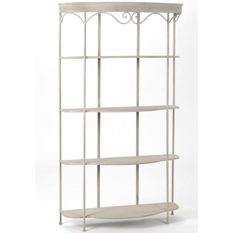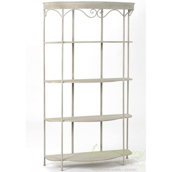Wysoki, metalowy regał w prowansalskim wydaniu, w górnej części obleczony dekoracyjnie wygietymi prętami. Regał ten zapewnia dużo miejsca użytkowego, jednocześnie nie przytłaczając przestrzeni Twojego wnętrza. Jego wielką zaletą są szerokie, wyraziste półki, podkreślone pionowymi wspornikami. Nadszedł czas na metalowe meble w stylu prowansalskim!