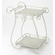 Metalowy stolik o dwóch blatach, z bardzo gustownie wyglądającymi, ukształtowanymi prętami okalającymi konstrukcję. W przedniej części stolika zobaczyć możemy dwa małe kółka, które dodatkowo wywołują wrażenie, że oglądamy dekoracyjny wózek! Wspaniałe meble metalowe - zobacz je koniecznie!